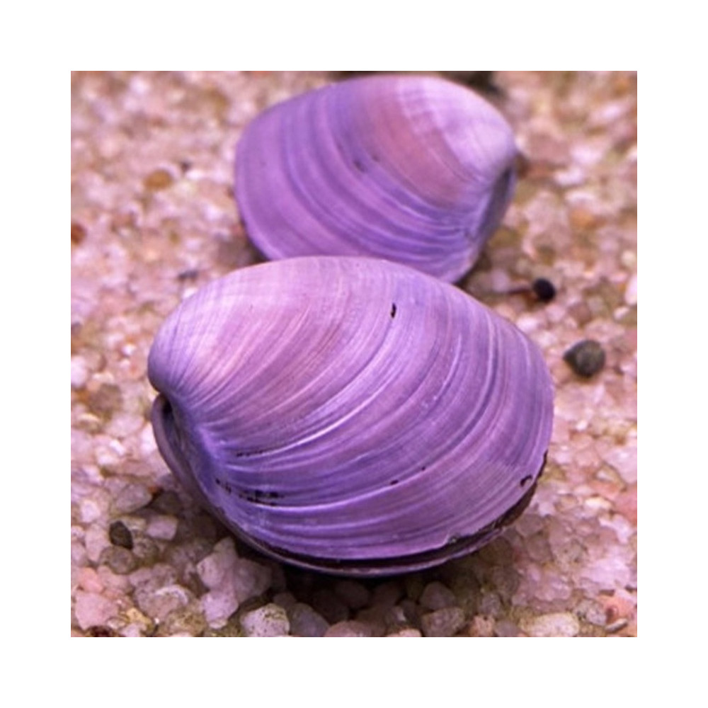 Palourde filtreuse avec de nombreuses couleurs bleu a violet sur sa coquille