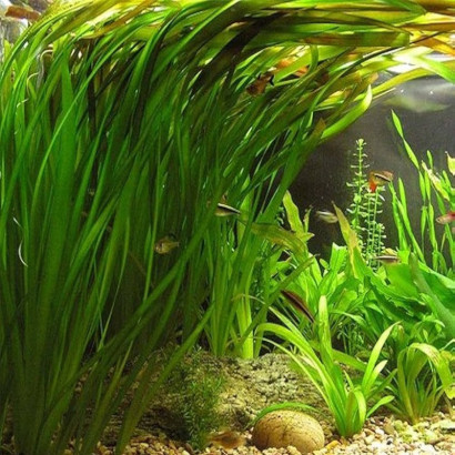 POT livré du fournisseur en général fourni de 5 - 6 brins enracinés et hauteur 15 - 20 cms et maintenu en aquarium immergé.