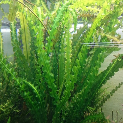 Jeune Bulbe livré du fournisseur en général peu fourni : quelques feuilles justes sorties, maintenu en aquarium immergé.