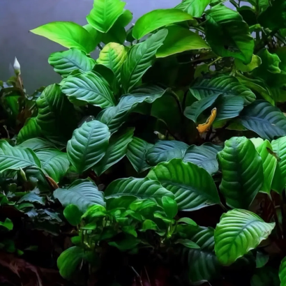 Feuilles arrondies très nervurées verte, à l'aspect de grains de café